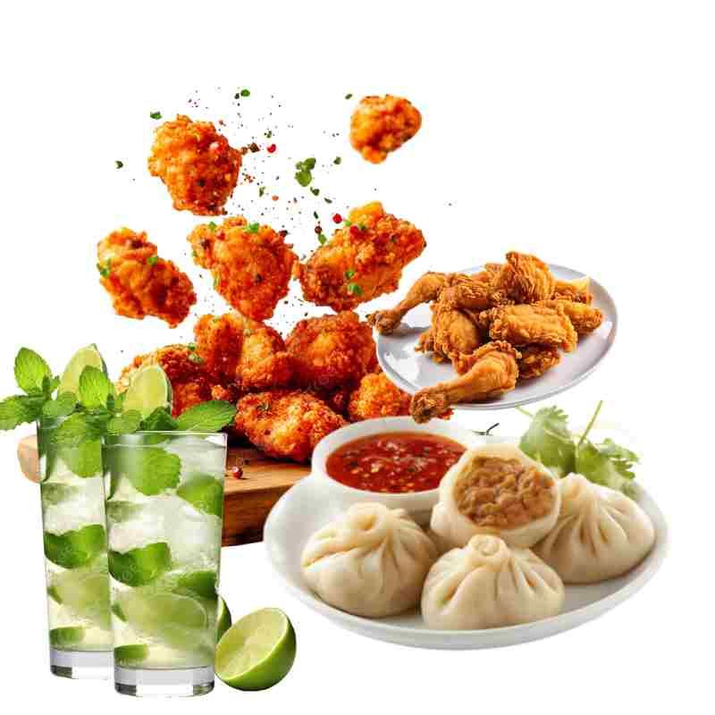 Chicken Popcorn+Chicken Momos+Crispy+Jumbo Chicken+2 Mojito